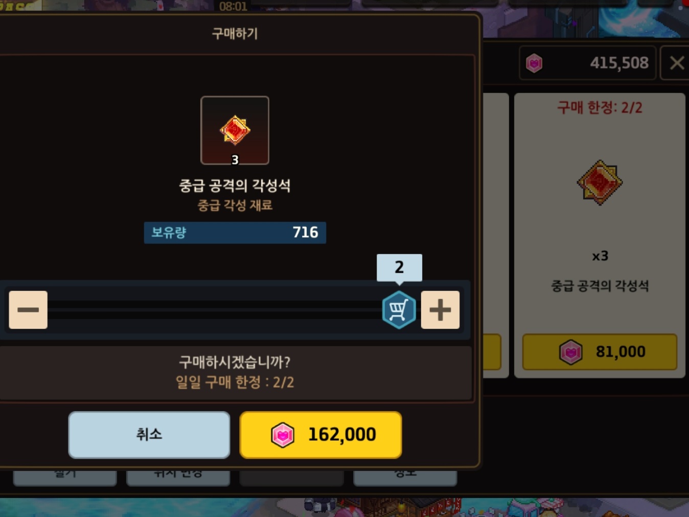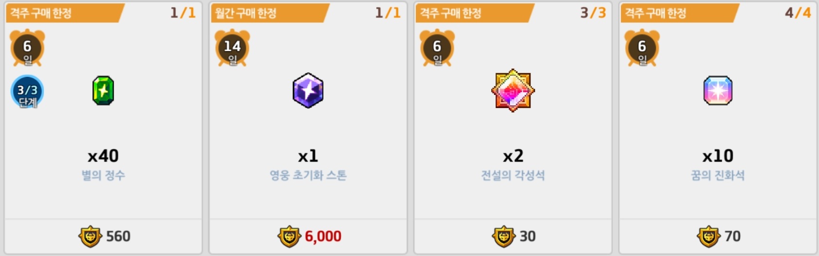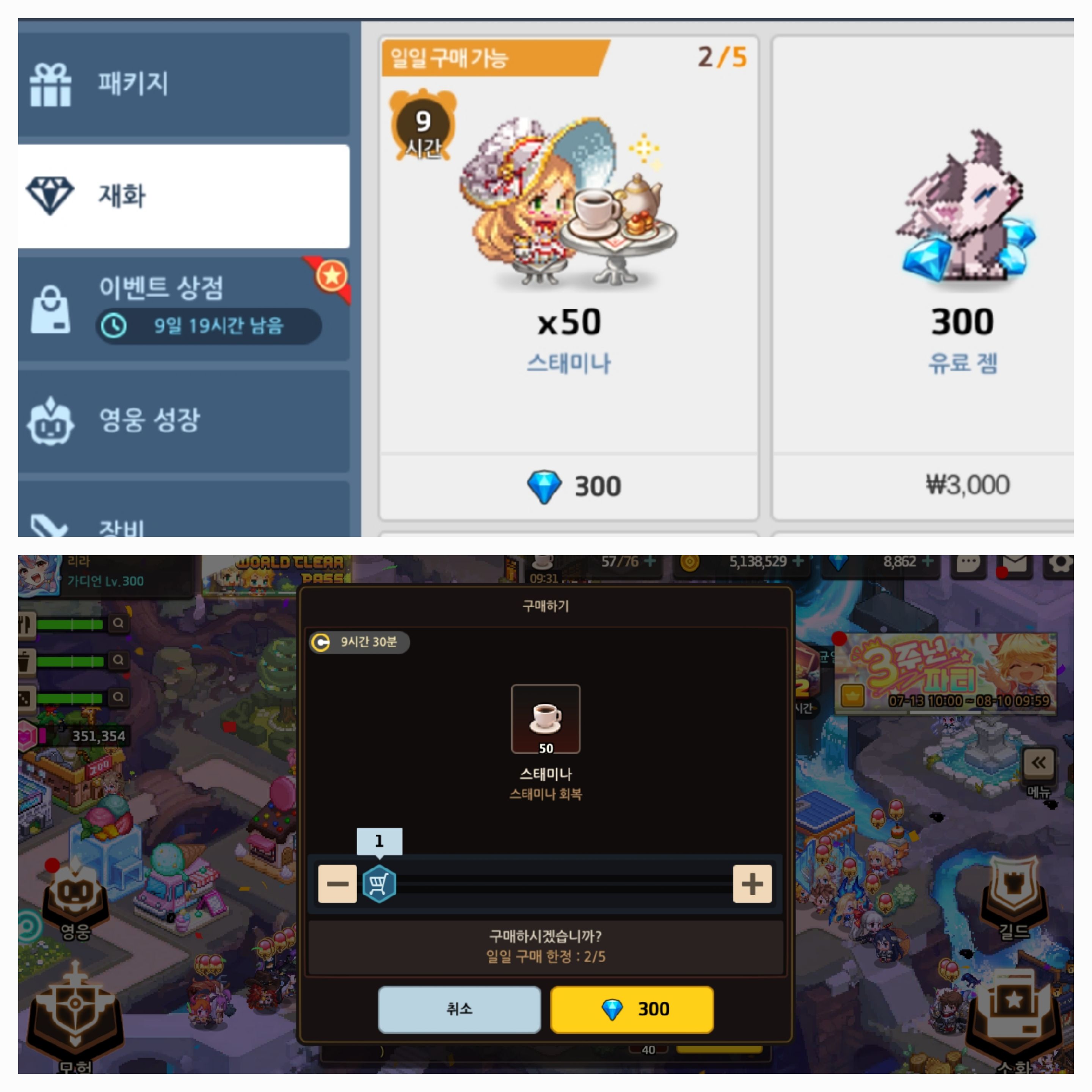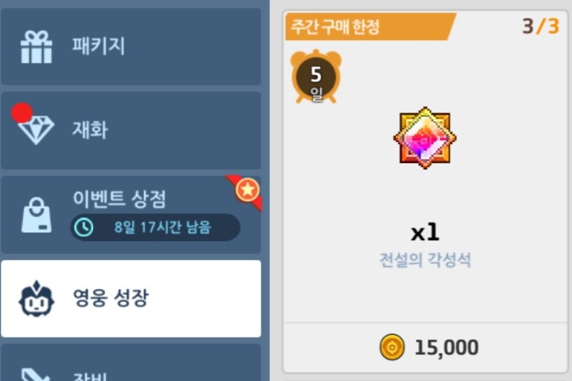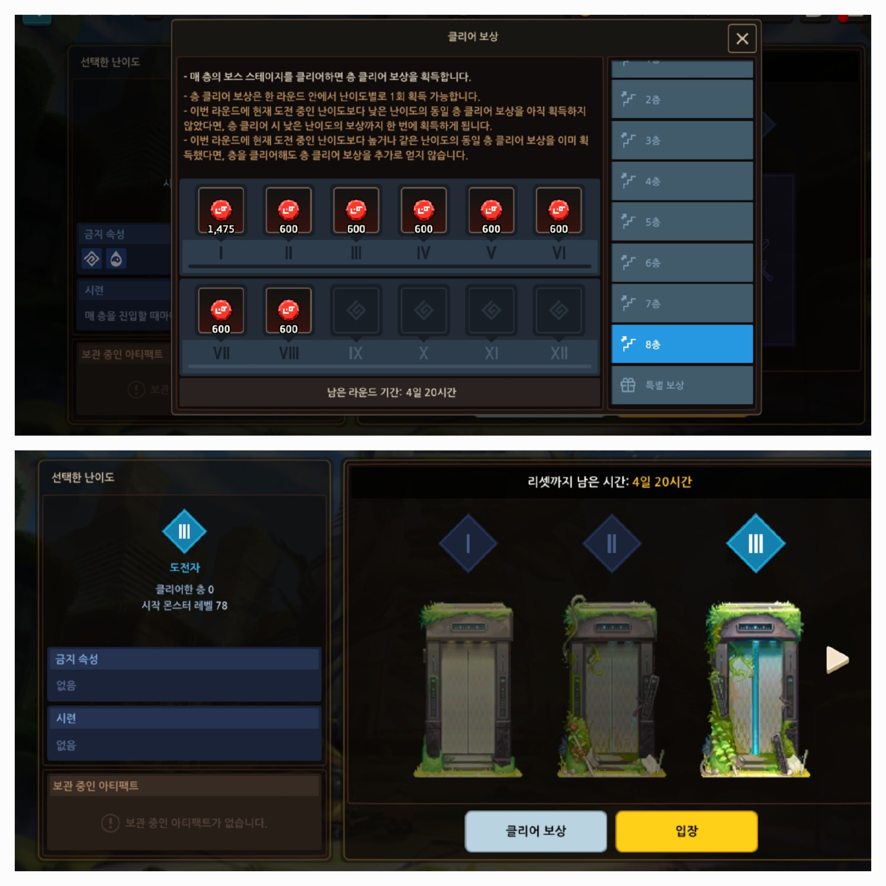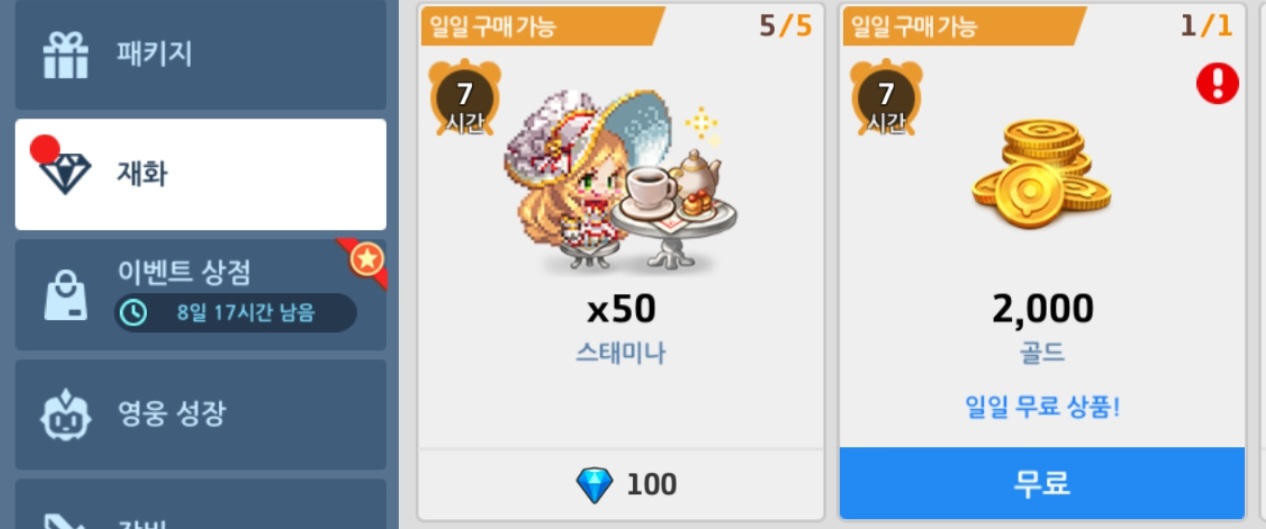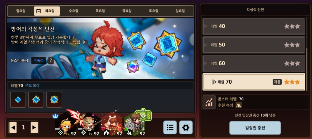 클리어 가능한 재화 던전의 레벨을 올리자.