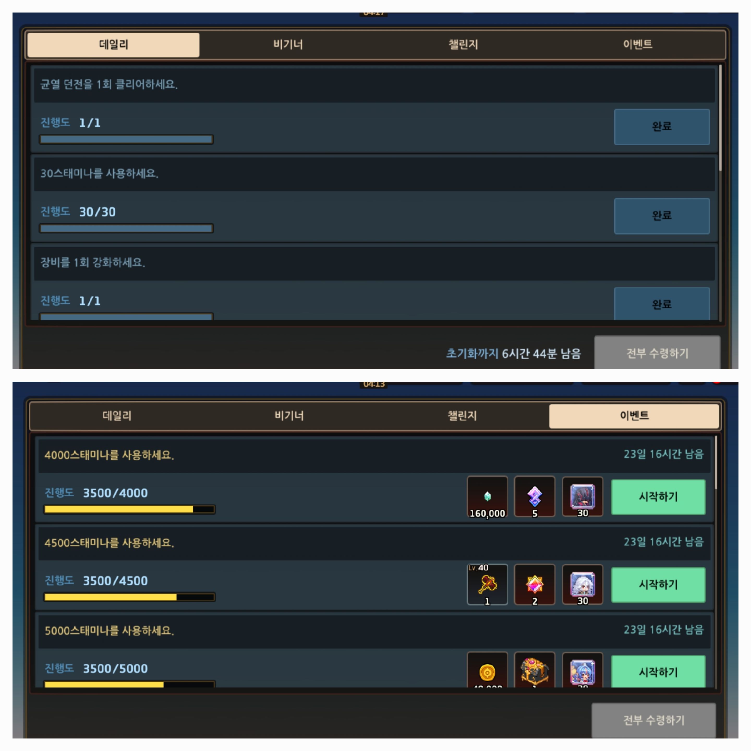 각성석 던전 / 세계 탐험 (굿즈 획득)을 제외 한