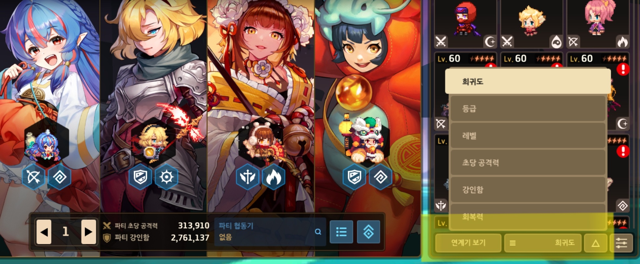 리더 + 리더를 받쳐 줄 서브 영웅 3명입니다.