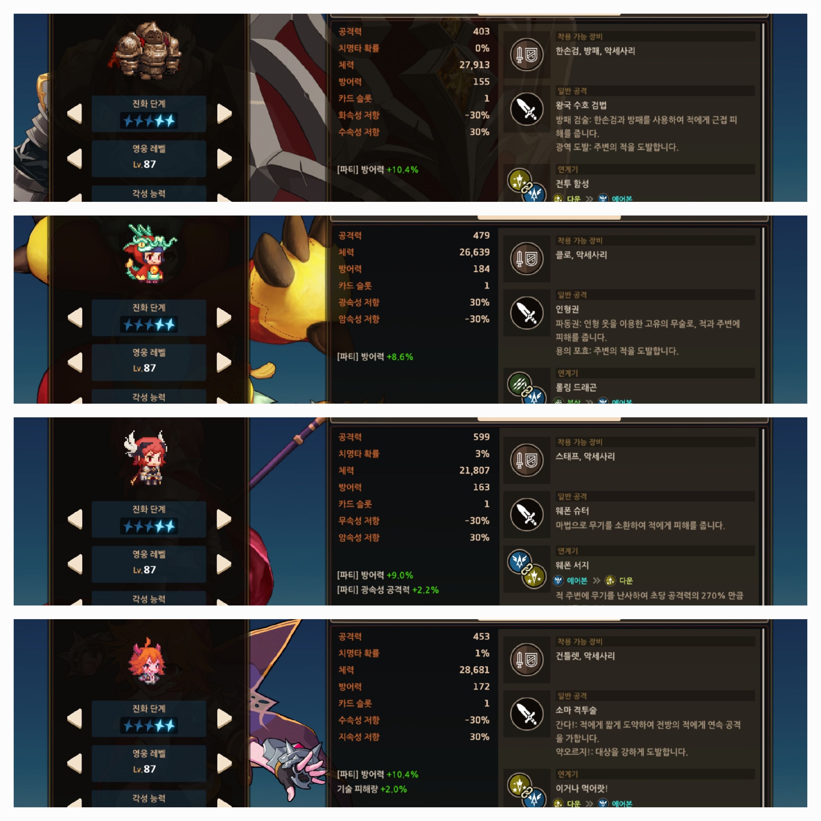 나머지 스타팅 영웅들을 육성하는 방식입니다.