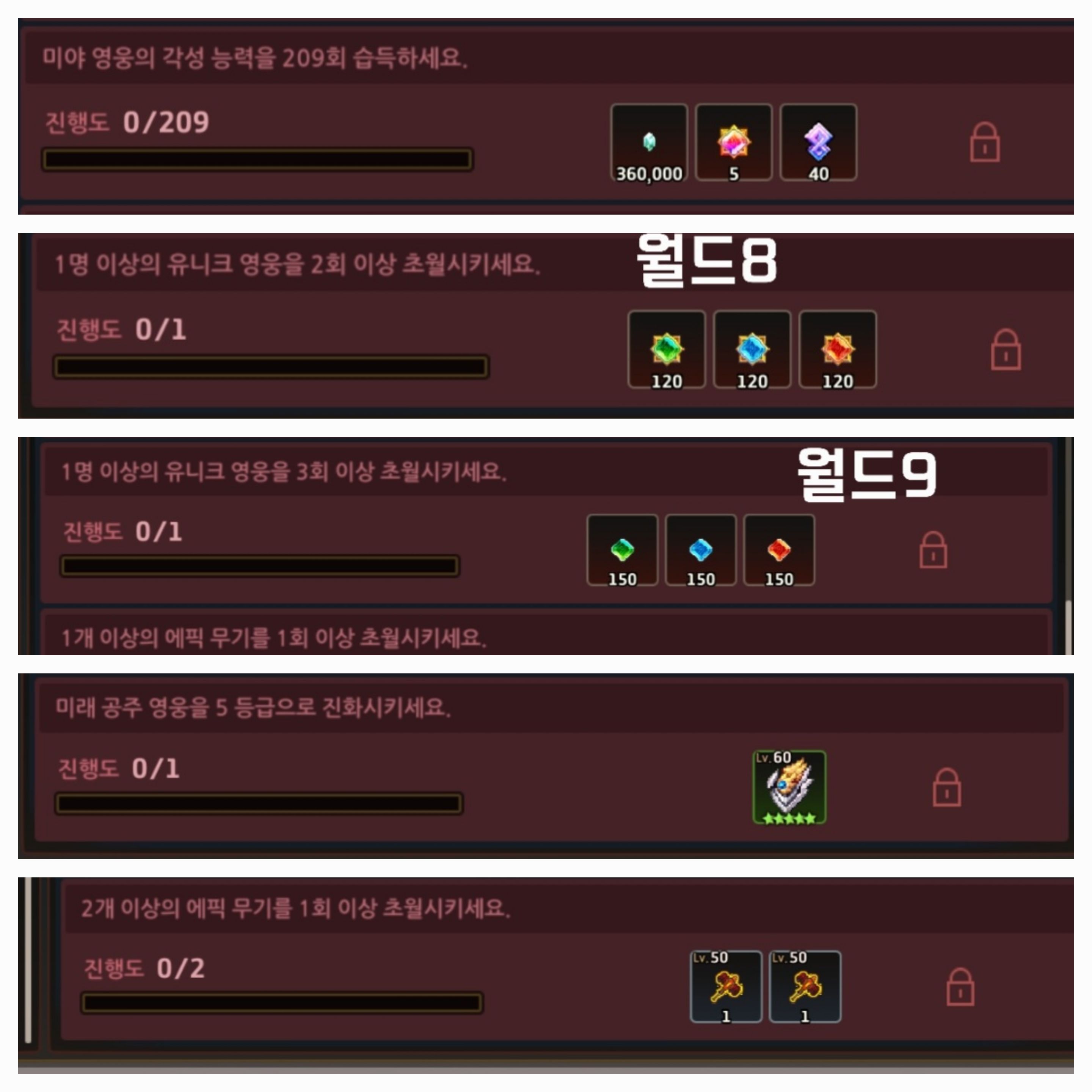 * 다만 월드8의 유니크 영웅 초월 미션에서는