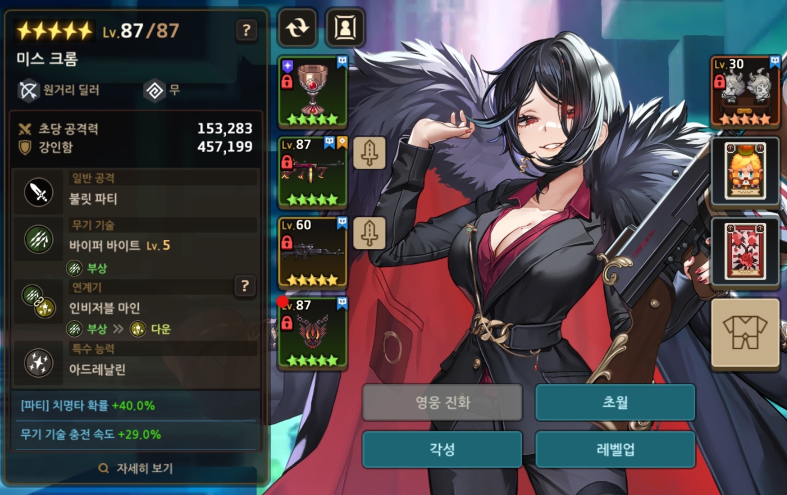 크롬의 치명타 확률이 100%가 되기에