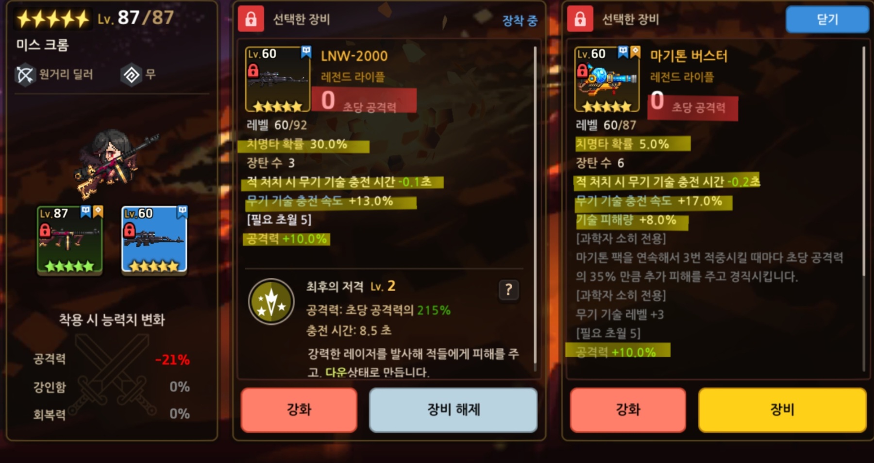 미스 크롬 LWN 치명타 100% 세팅