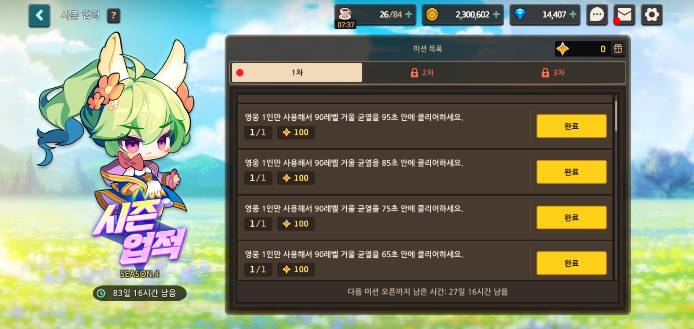 75초 이내 등 미션을 목표로 해보세여!