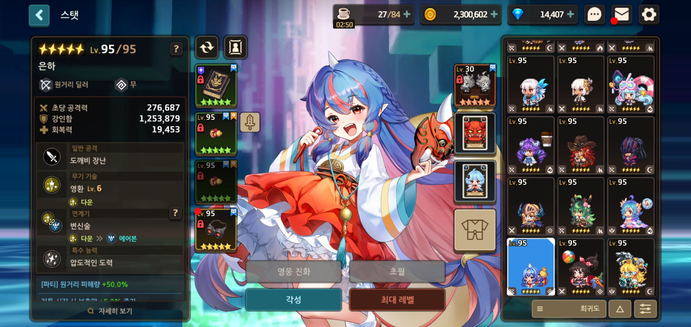 제꺼가 은하케릭이랑 전무 둘다 수련의방에 넣어놨는데 공격이랑 피 차이가 너무 많이 나요ㅠㅠ 왜 그런걸까요?? 유물이 없어서 그런가요?이미지 확대