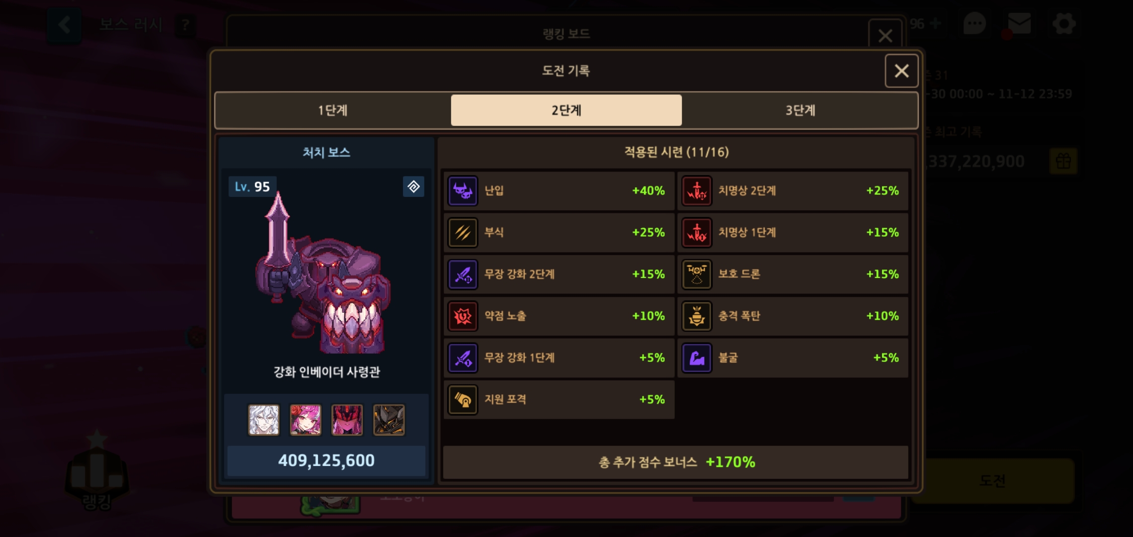 보스러시 13억 점 이상 달성