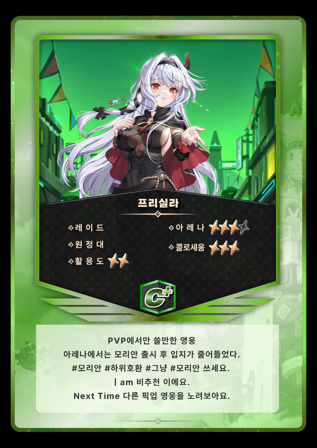 [가슐랭가이드] 픽업영웅 분석 ( ~ 11월 16일(목) 10:00 ) 작성자앜당|작성시간23.11.01|조회수4,816 목록 댓글 4 글자크기 작게가 글자크기 크게가 기존 디자이너 분의 현생이슈로 가슐랭 카드 디자인이 변경되었습니다.가슐랭팀의 리시님이 새로 제작한 카드도 많은 사랑 부탁드립니다. 다음검색 현재 게시글 추가 기능 열기 북마크 공유하기 신고 센터로 신고 댓글 댓글 4 댓글쓰기 답글쓰기 댓글 리스트 작성자용용(baki) | 작성시간 23.11.01 작성자바닐&첼 | 작성시간 23.11.01 작성자흰박의 죠죠 | 작성시간 23.11.01 작성자이아우그 | 작성시간 23.11.02 미스크롬 몸만 있어도 괜춘한가용?전무도 있는게 좋죵? 댓글 전체보기