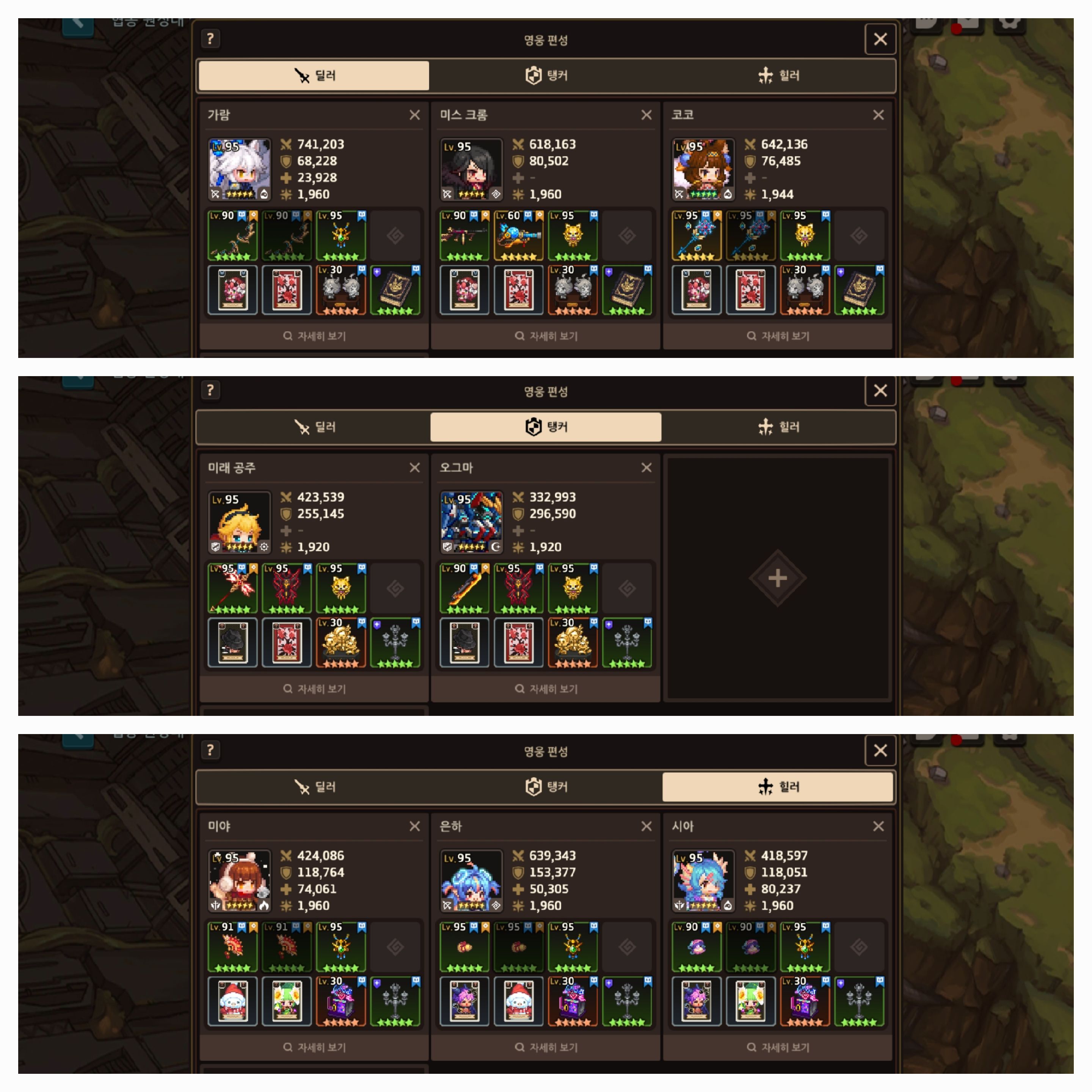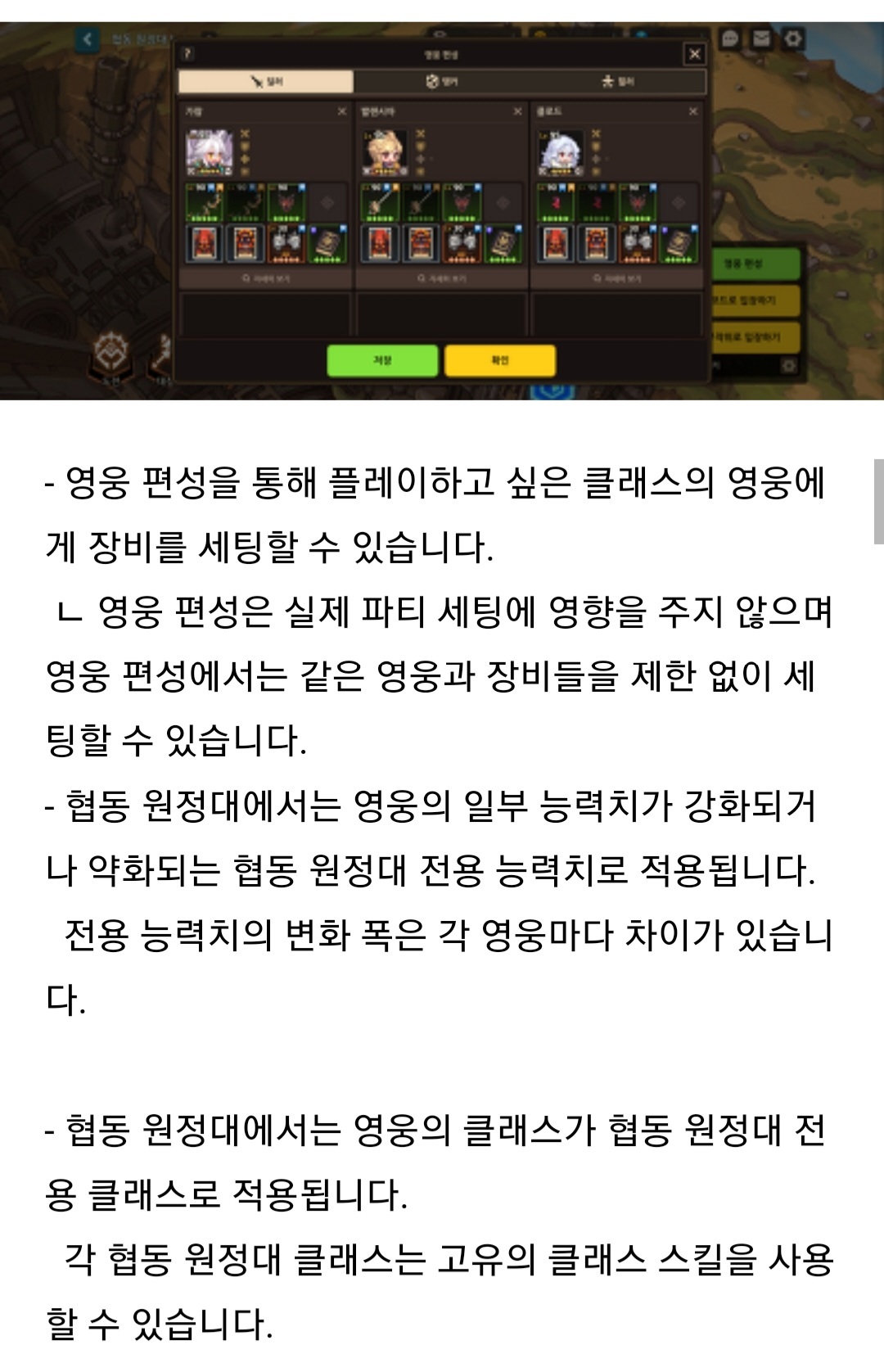 의 직업군 영웅을 미리 세팅 할 수 있으며
