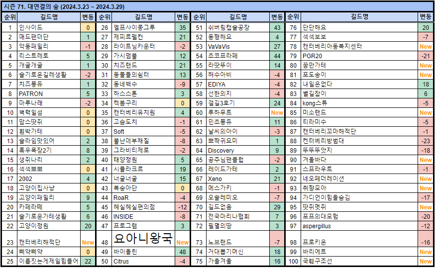 그전에 보이던 길드들도 많고 11시즌 사이에 빈자리도 새로운 길드이름들도 보이네요.