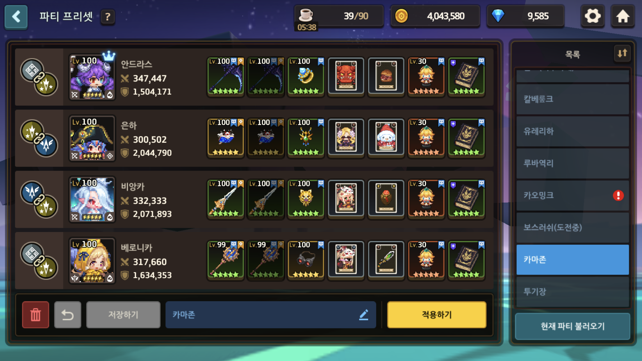 리더포함 캐릭터 순서에 따라서 결과가 달라집니다.