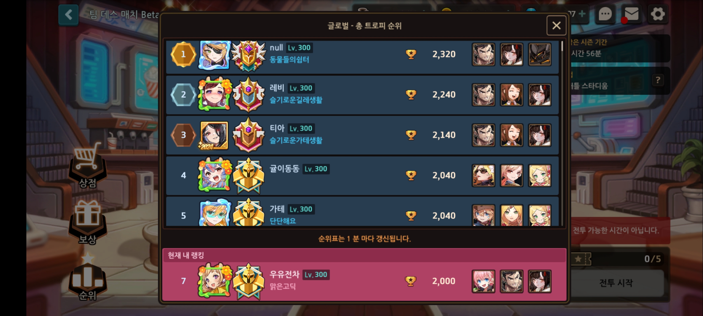 [기타]2024/0325~0331 팀 데스매치 in10 목록(맵: 배틀 스타디움) 작성자우유전차|작성시간24.04.02|조회수324 목록 댓글 0 글자크기 작게가 글자크기 크게가 이제부터 팀 데스매치는 격주라네요.소신발언 : 베로니카는 이제 그만 놔두자. 다음검색 현재 게시글 추가 기능 열기 북마크 공유하기 신고 센터로 신고 댓글 댓글 0 댓글쓰기 답글쓰기 댓글 리스트