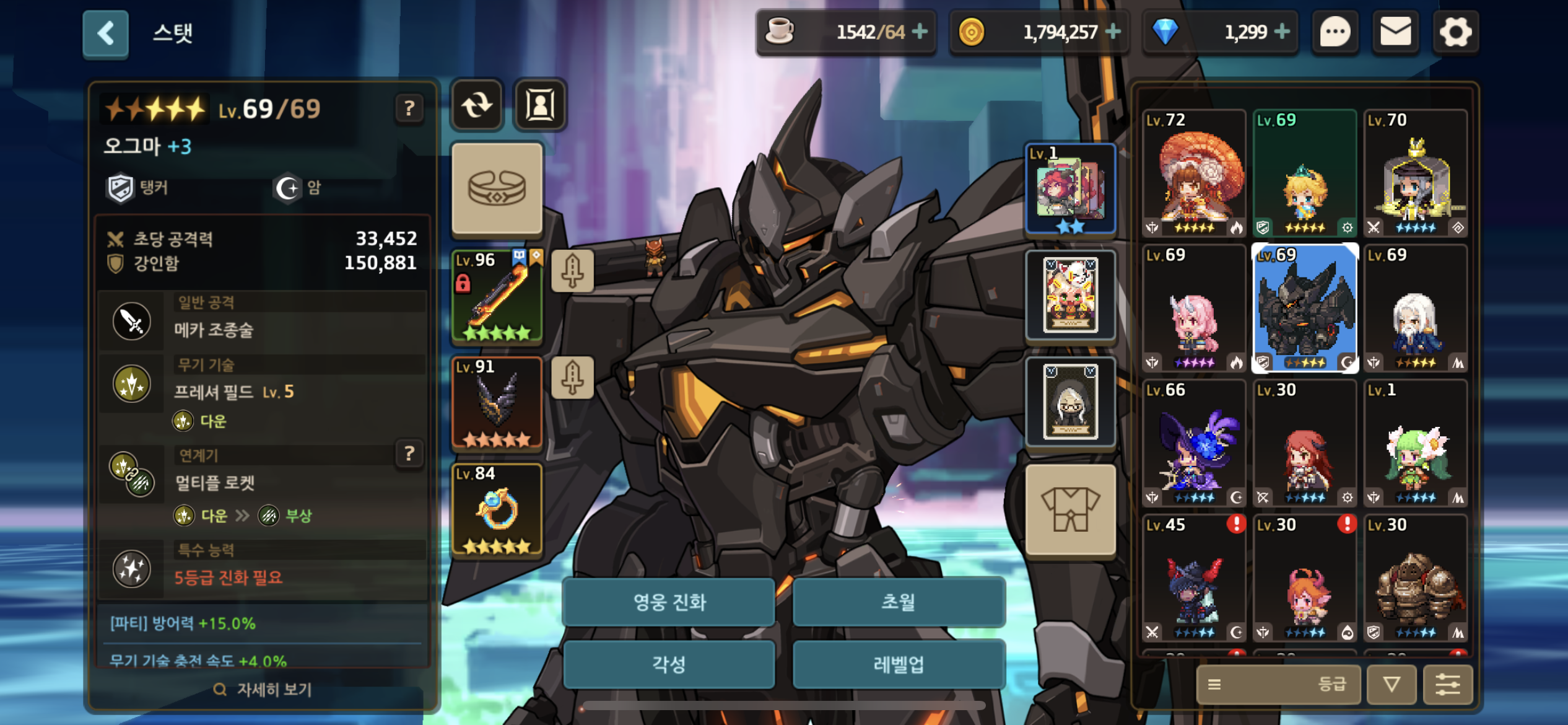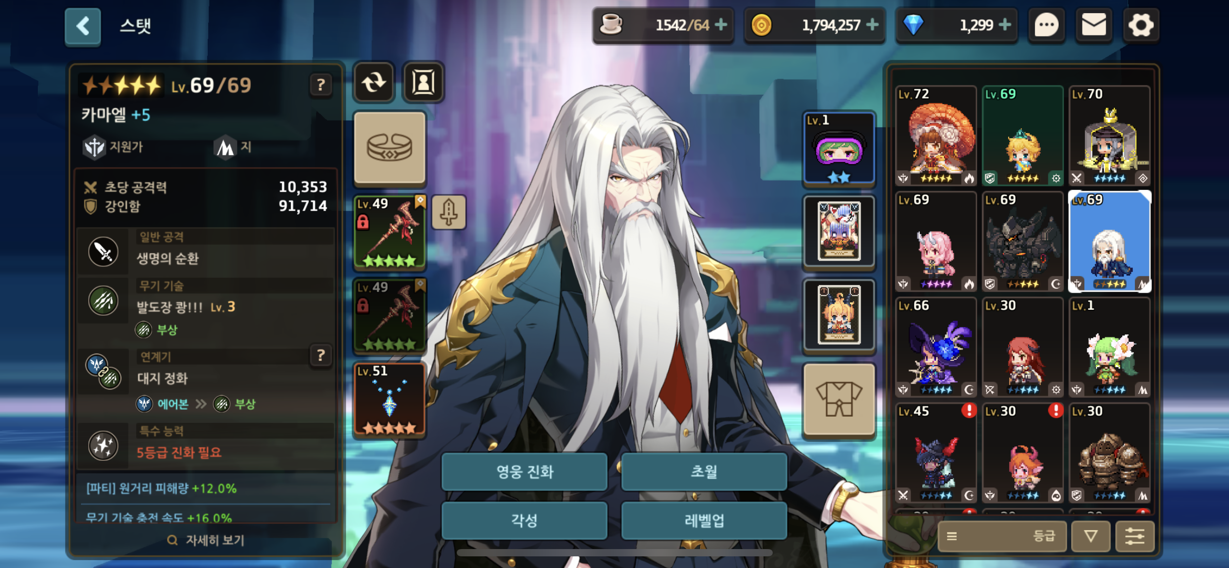미공은 수련의 방빼서 카마엘주고 진화석 모이면 다시 미공 넣으세요. 방패는 기사 끼는거 빼서 쓰세요