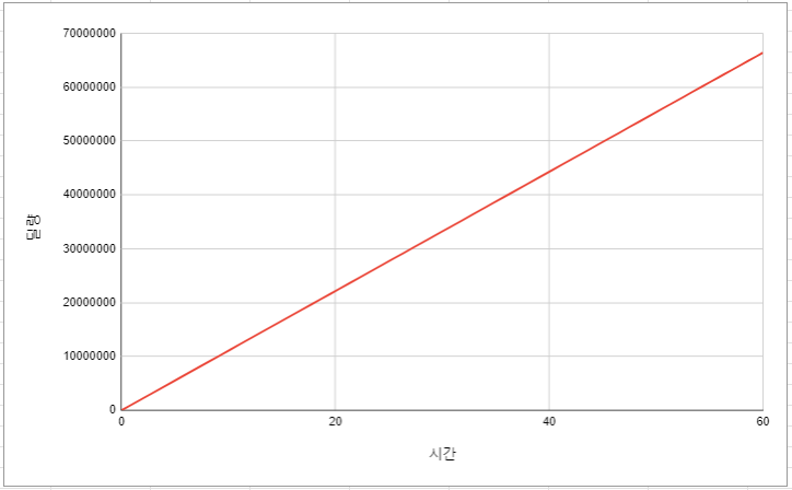 하지만 안에서 이월을 먹는 경우 빨간 선을 따라 이월 시간이 계산되기 때문에 550만을 처리하는 데에 든 시간이 5초! (빨간 표시)