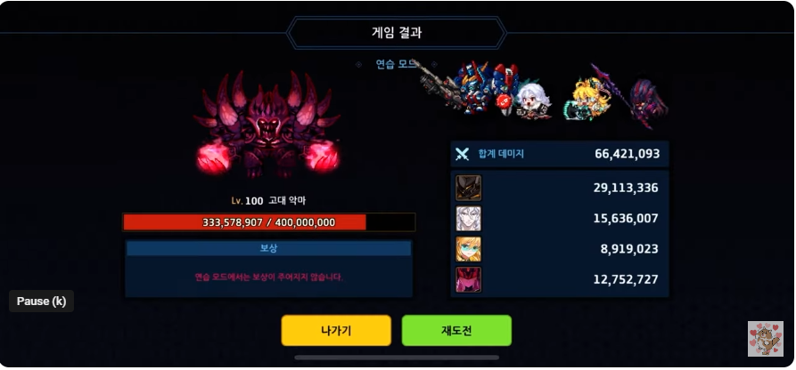 상당히 극단적인 예를 들어서 그 차이가 심해 보이지만 요런 차이가 보스 하나 처리될 때마다 야금야금 쌓여서 큰 차이가 될수 있다네.