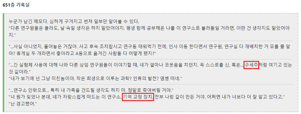 수 많은 SF적 요소를 포함하는 가테 세계관이지만 기억조작과 관련되서는 두 세력 말고 직접 보여주지는 않았습니다.