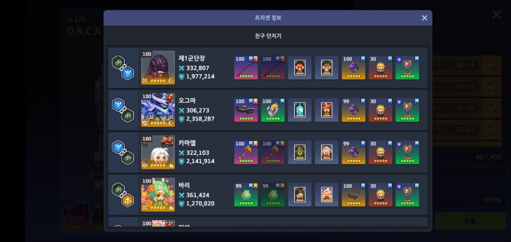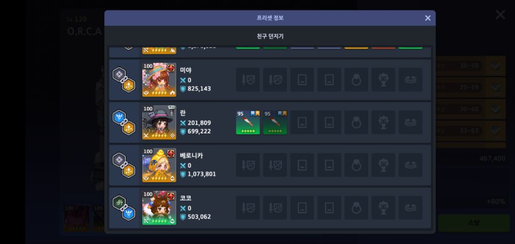 (+추가) 이 당시에는 제가 꼬공피 너프먹은 걸 몰라서 기피증 파티버프를 최대한 많이 넣었지만 현재는 기피증 466.66...%가 꼬공피의 상한이므로, 기피증 파티버프는 5개면 충분할 것 같습니다.