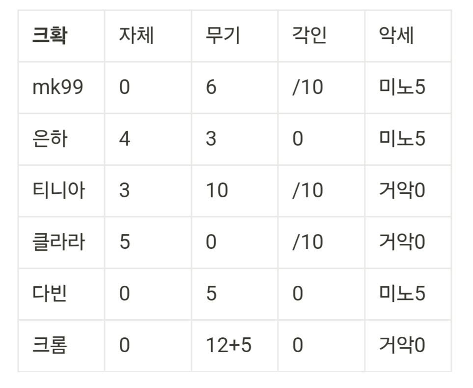 현재는 치명타 98% 수준으로 모두 세팅된 상태