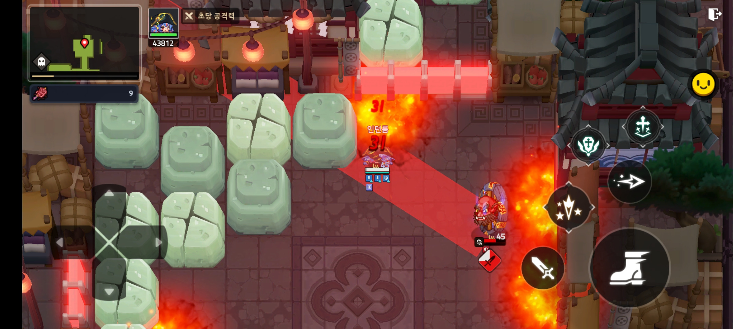 딜러 : 불꽃 지우기 → 벽 열리면 까마귀부터 정리(윤은 공격방향 잘 맞춰서 가로로 2마리 맞게 위치조정) → 들개 요괴 리스폰 되면 탱커한테 끌려가는 방향 길막하지 않고 딜 하기