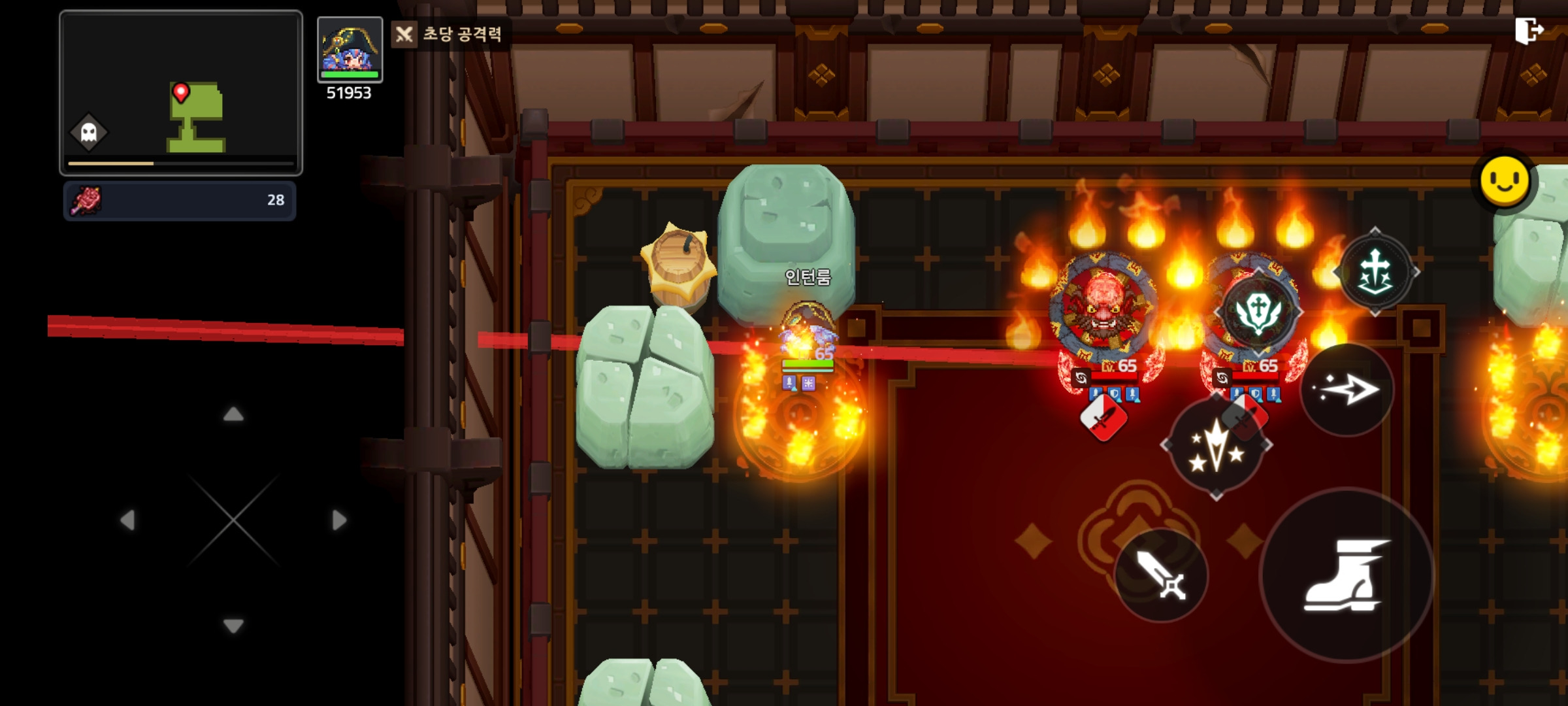 탱커 : 불장판쪽 버튼 누르기 → 미로와 버프주는 적 마무리 후 바로 네 번째 방으로 진입