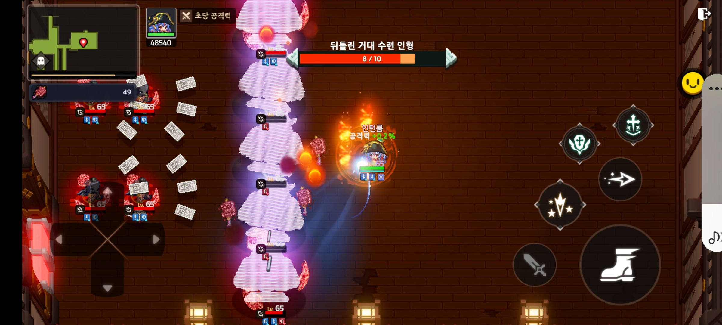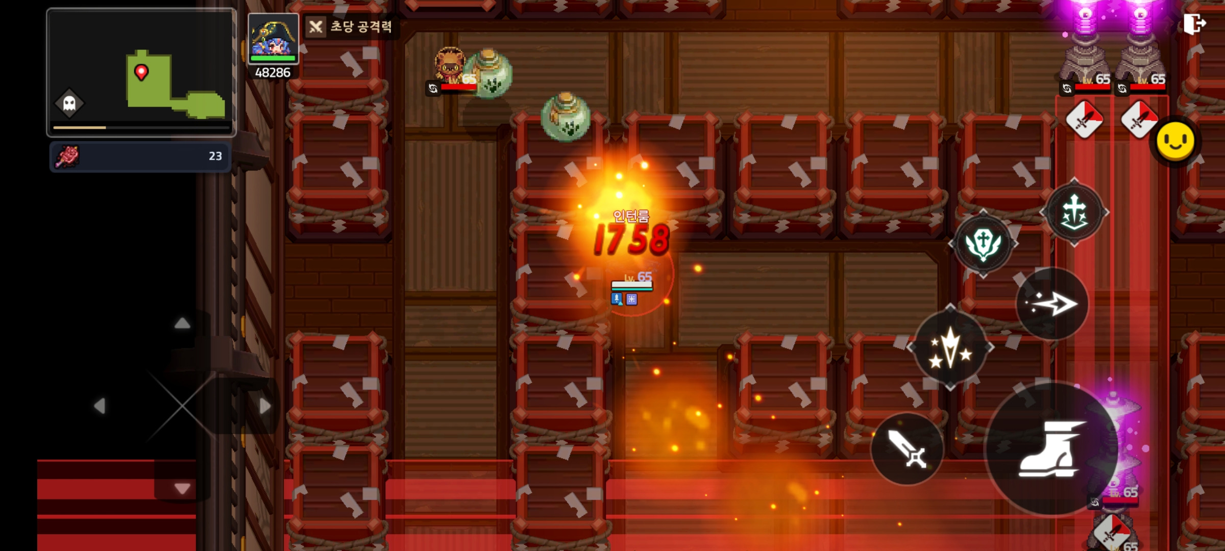딜러 : 우측에 큰 불꽃 지우기(대기하는 도중에 토우 대장 공격하지 않기) → 미로에 적 리스폰되면 순서대로 제거. 첫 번째 타워에 보라색 구슬 연발하는 적 꼭 마무리하고 다음 단계로 넘어가기 → 아군의 공격력이 충분하면(보석 레벨이 높거나 스미레가 있는 경우) 세 번째 포탑까지, 아니라면 두 번째 포탑까지 제거 후 대기(세 번째 포탑으로 진입했는데 딜이 모자랄 거 같으면 포탑 좌측의 안전지대로 대피) → 적 리스폰 후 마찬가지로 공격력이 충분하면 마지막 적까지 처치, 모자라면 1시 방향 포탑까지만 제거 후 대기