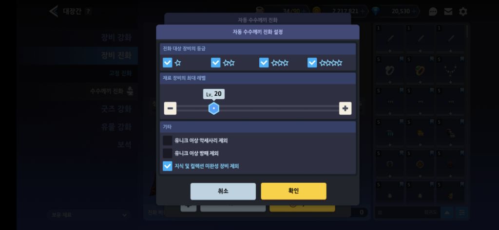 - 1,2성 악세, 무기들을 고정진화 및 수수께기진화