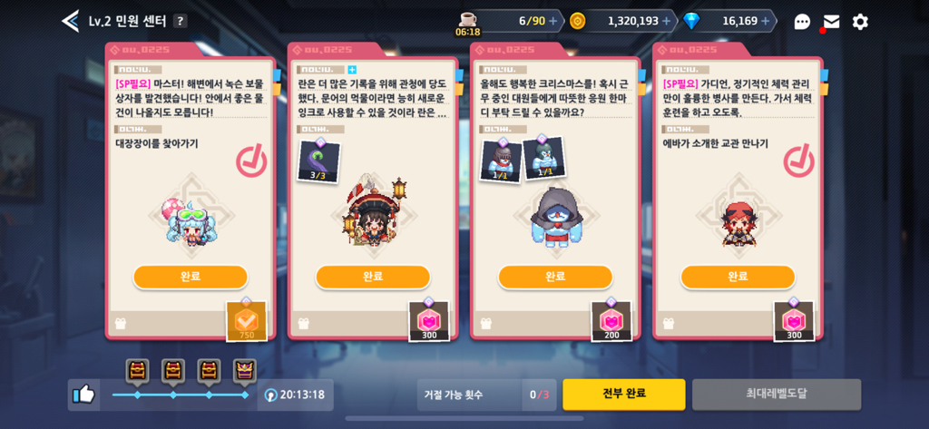 추가팁- 전부 완료 누르지 마시고, 그레모리나 대장장이 연매드팬더단 먼저 완료해주시고 다른 민원 완료 해주세요.