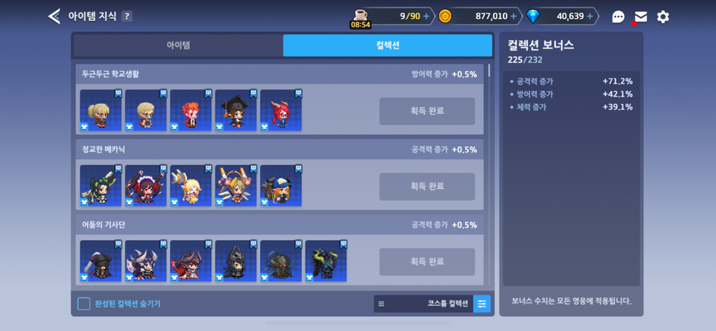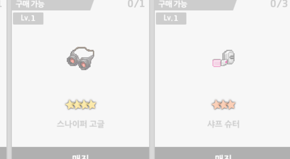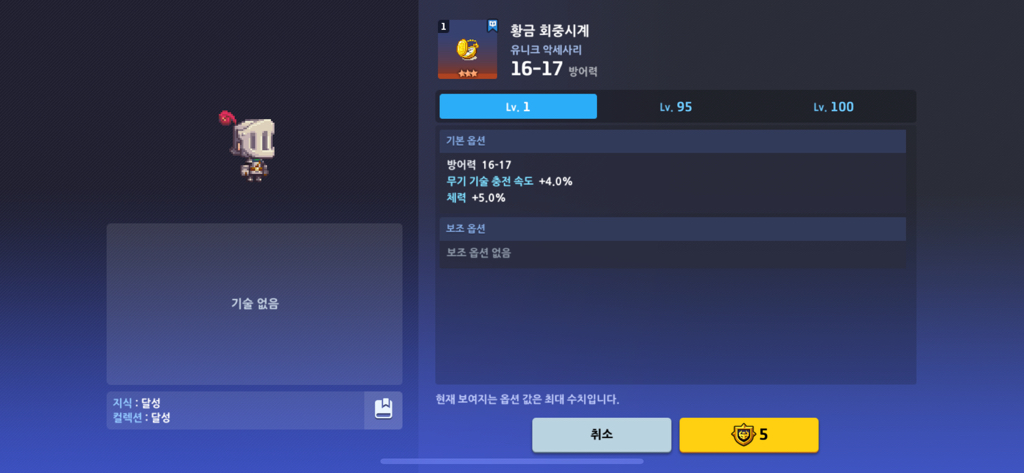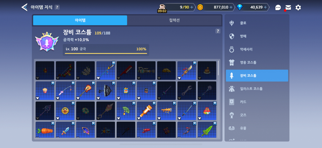 이런 식으로 무기코스튬 지식이 100렙을 찍을 때까지