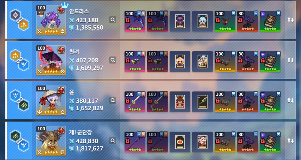 어차피 픽업 시스템 때문에 다 먹는 캐릭터, 장비들이니