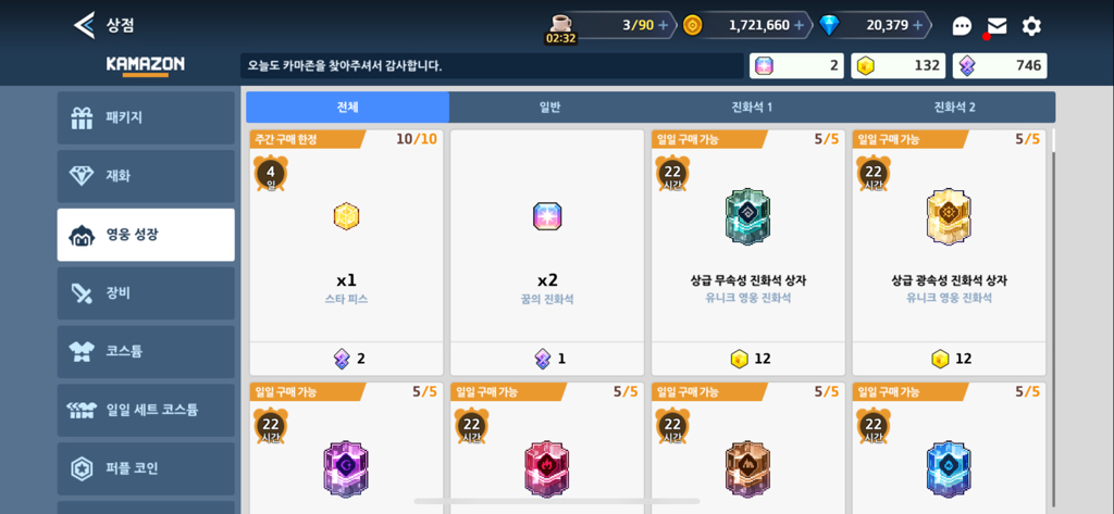 마일리지 최대한 아끼시고 성장 재화에 투자하세요.