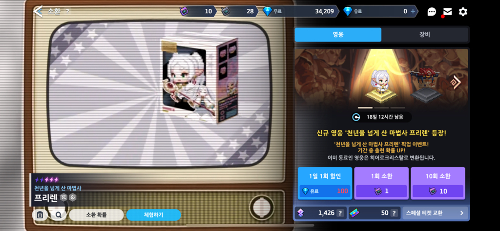 프리렌은 못 뽑으시면 아쉽기만 할 뿐이지만,