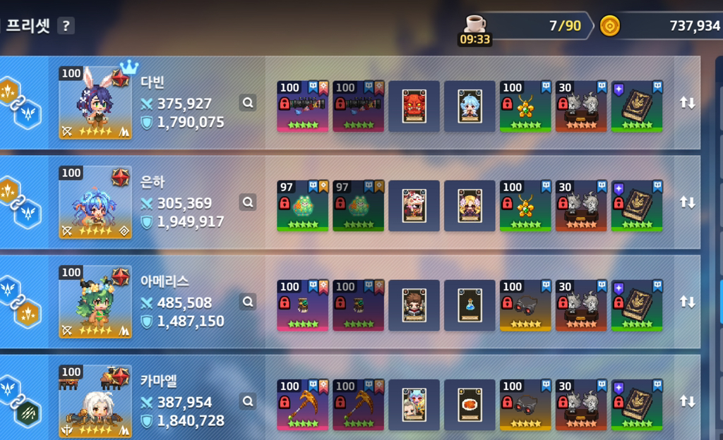 드렸지만 1성 애들은 그렇게 재화가 들어가지도 않아서