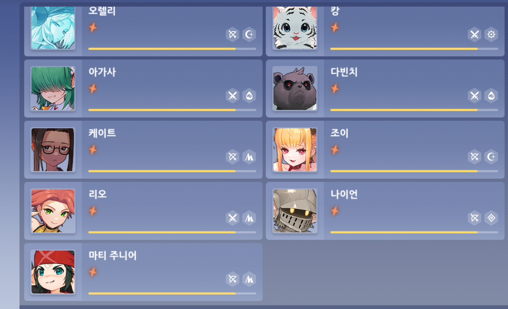별의 정수는 2성 캐릭터들 승급에 사용됩니다.