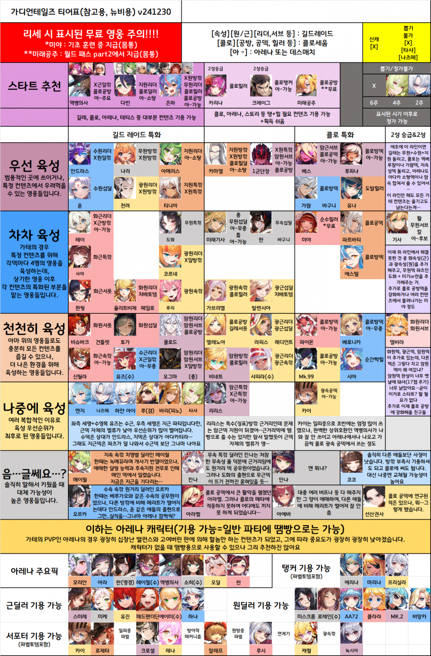 *이 티어표보다 자세한 사항은 갤에 상주중인