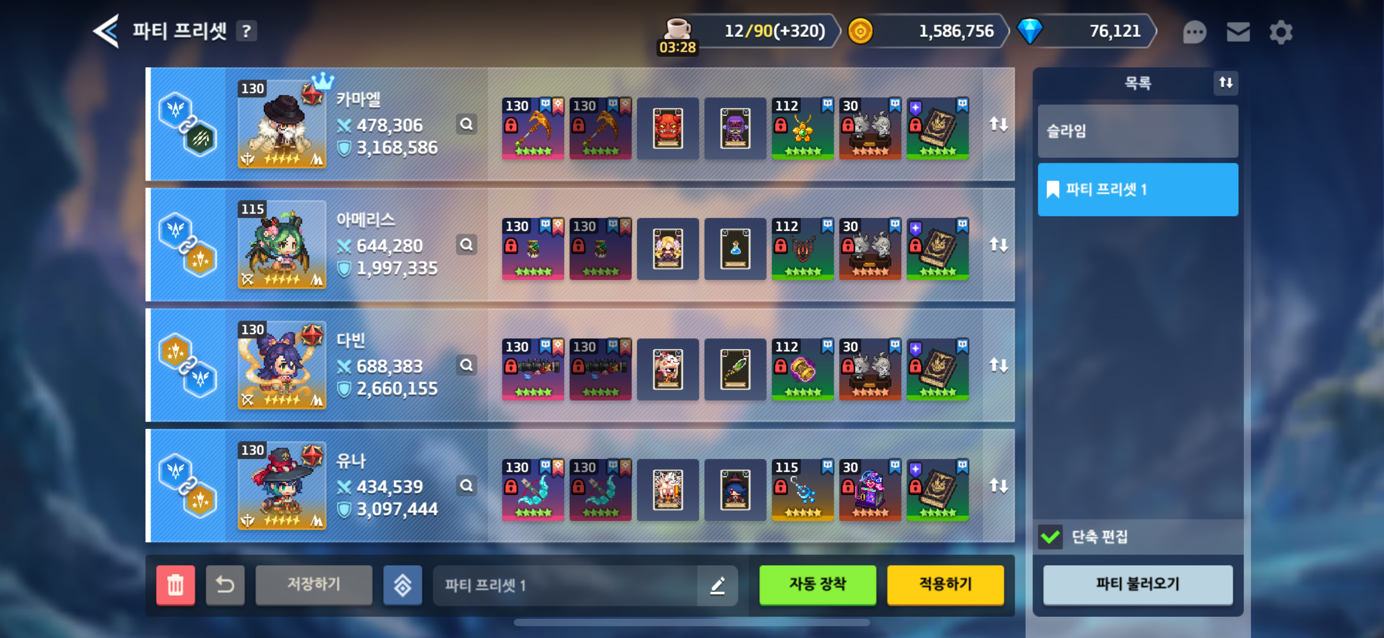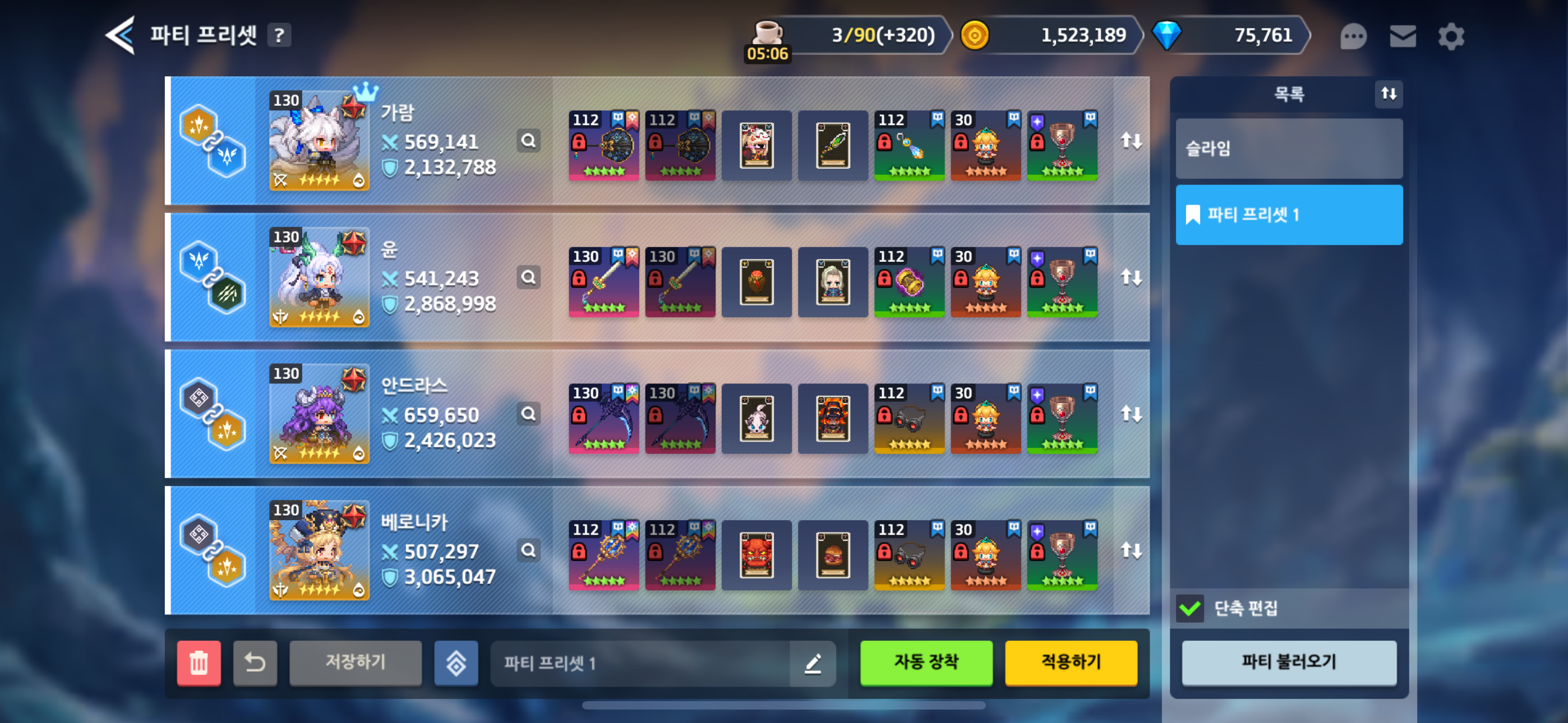 ※ 암속 개화던전은 다른분 프리셋 참고했습니다