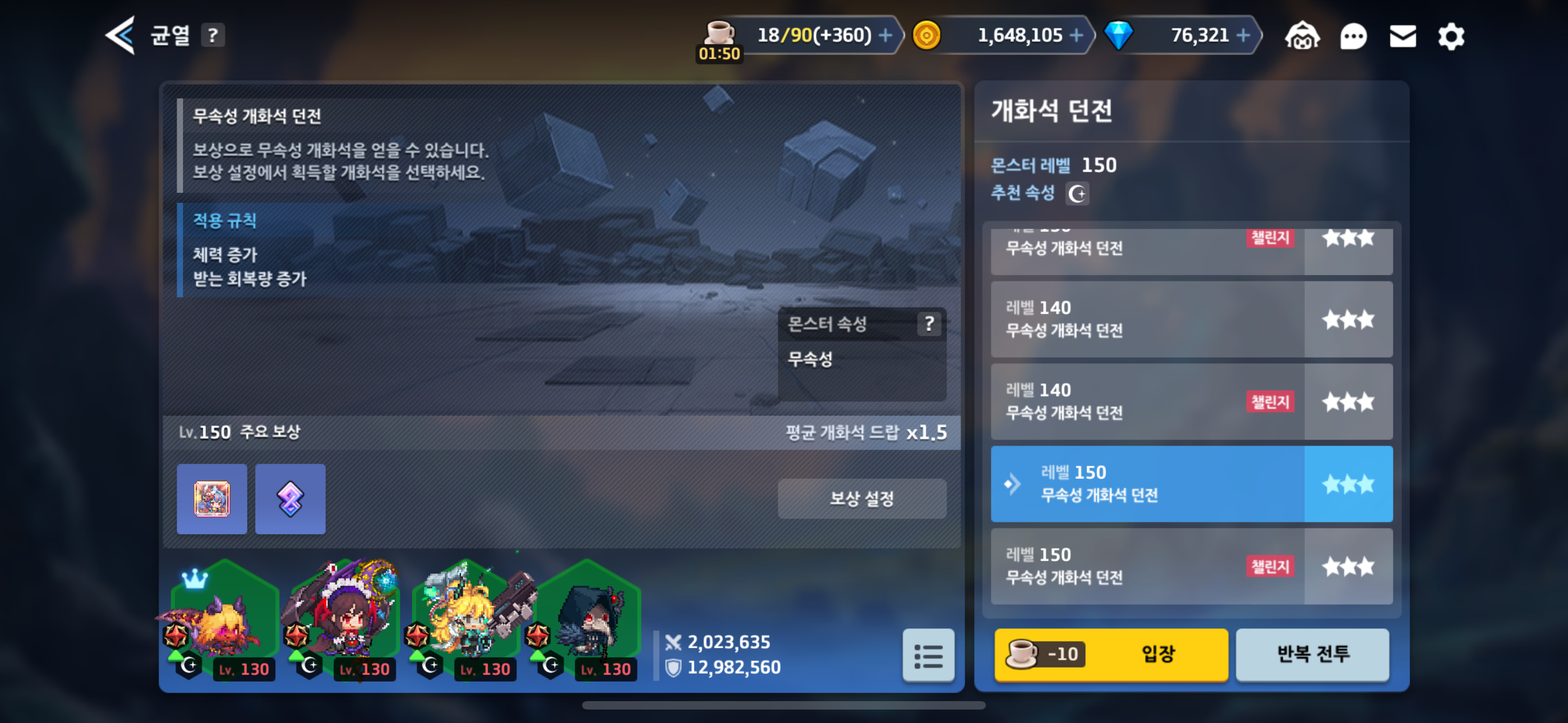 1. 무속성 개화 던전