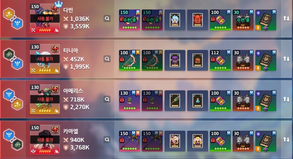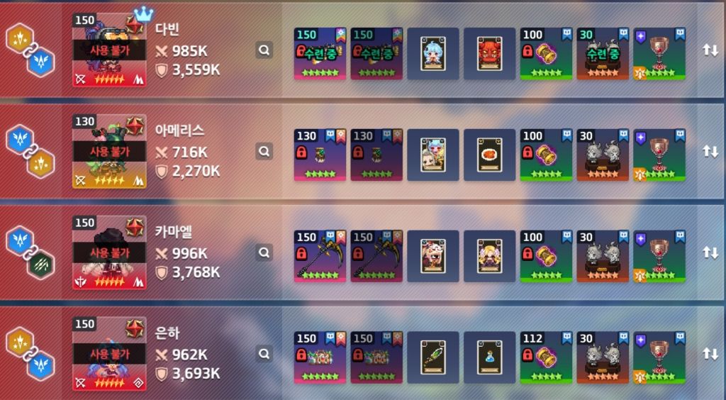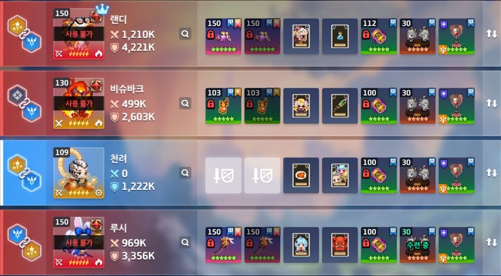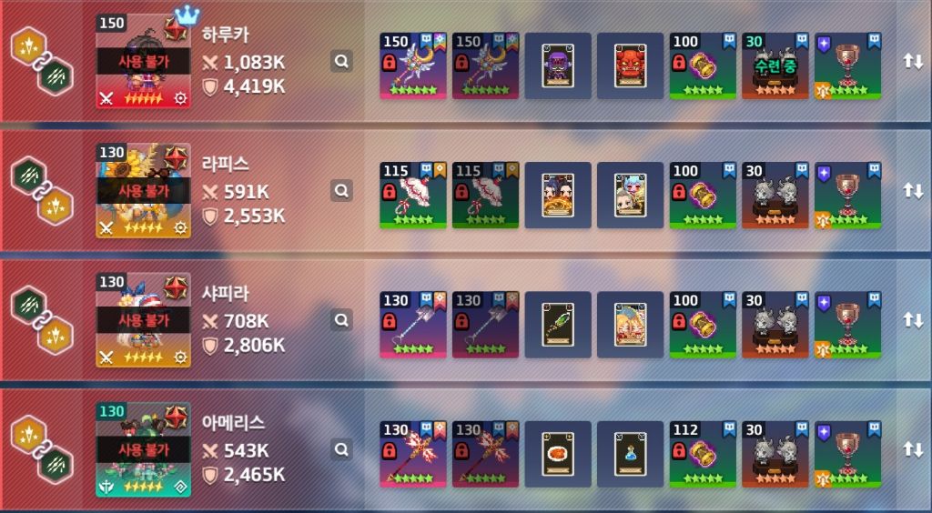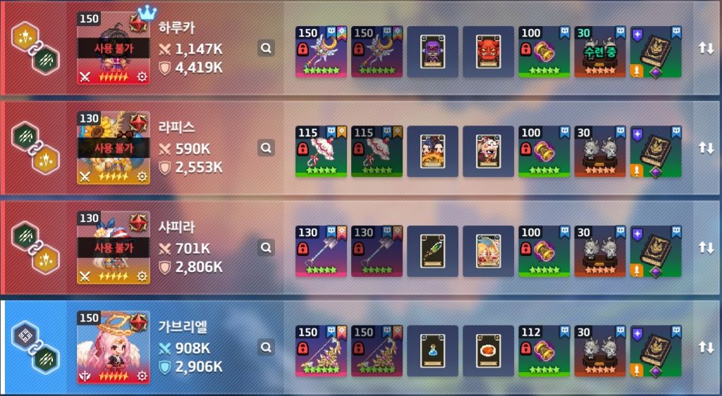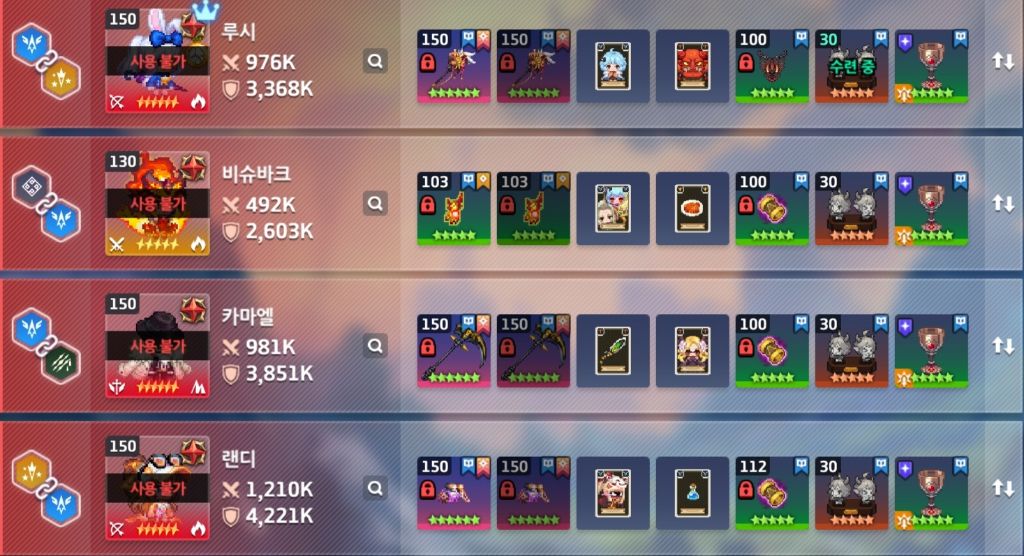 | 카마엘(용병) | 루시 | 치확 | 구찌 | 잔(치) |