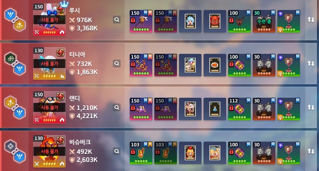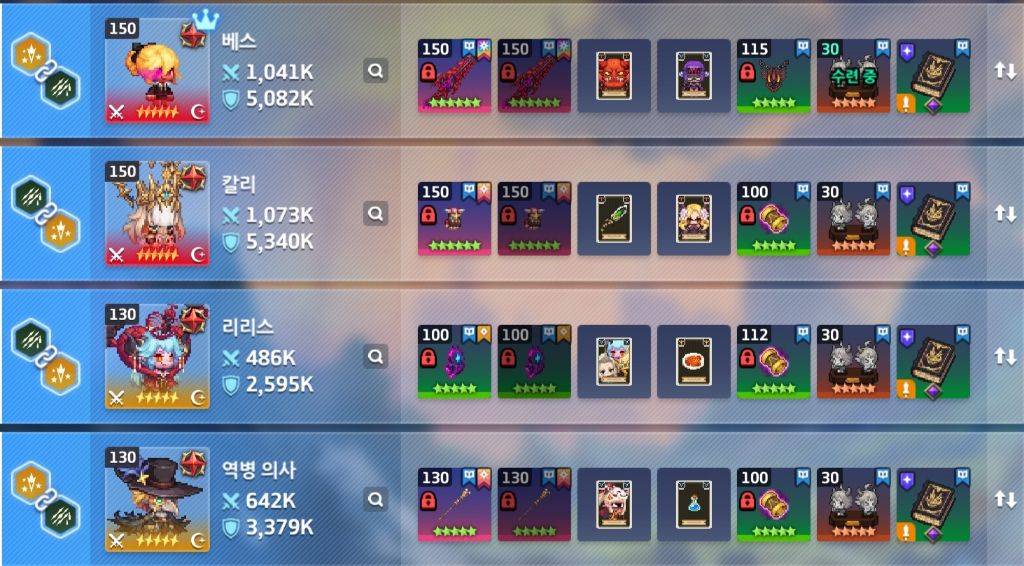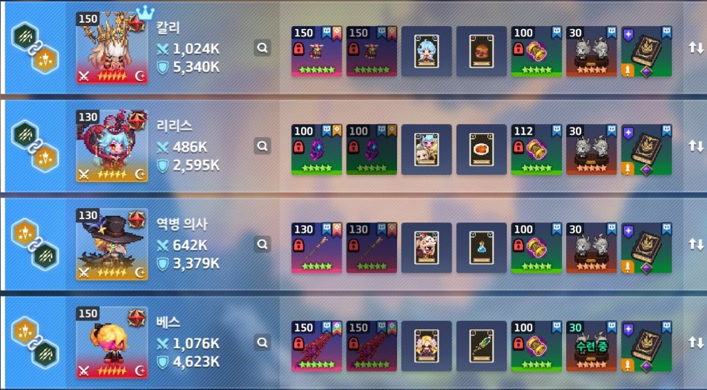 비고: 보스 상태이상 약점에 따라 리더, 딜량 다름