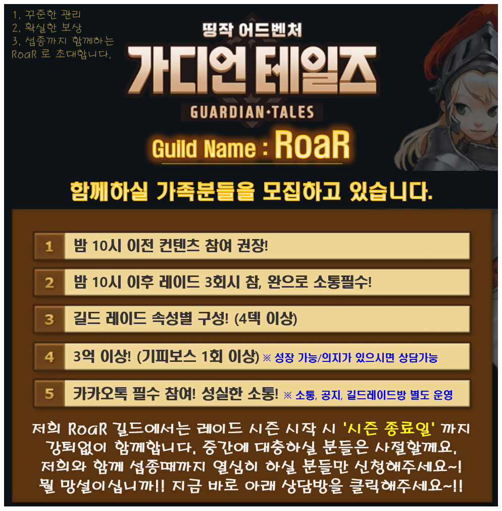 오픈채팅 검색 : 가디언테일즈 RoaR 상담방!