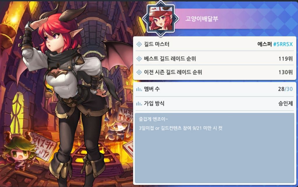 가입 원하시는 분은 고양이배달부 길드 가입신청하고 아이디 알려주시면 선착순으로 두 분 승인 해드립니다.