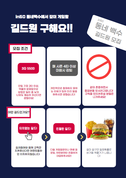 in50 동네백수에서 같이 게임할 길드원을 구하고있습니다!