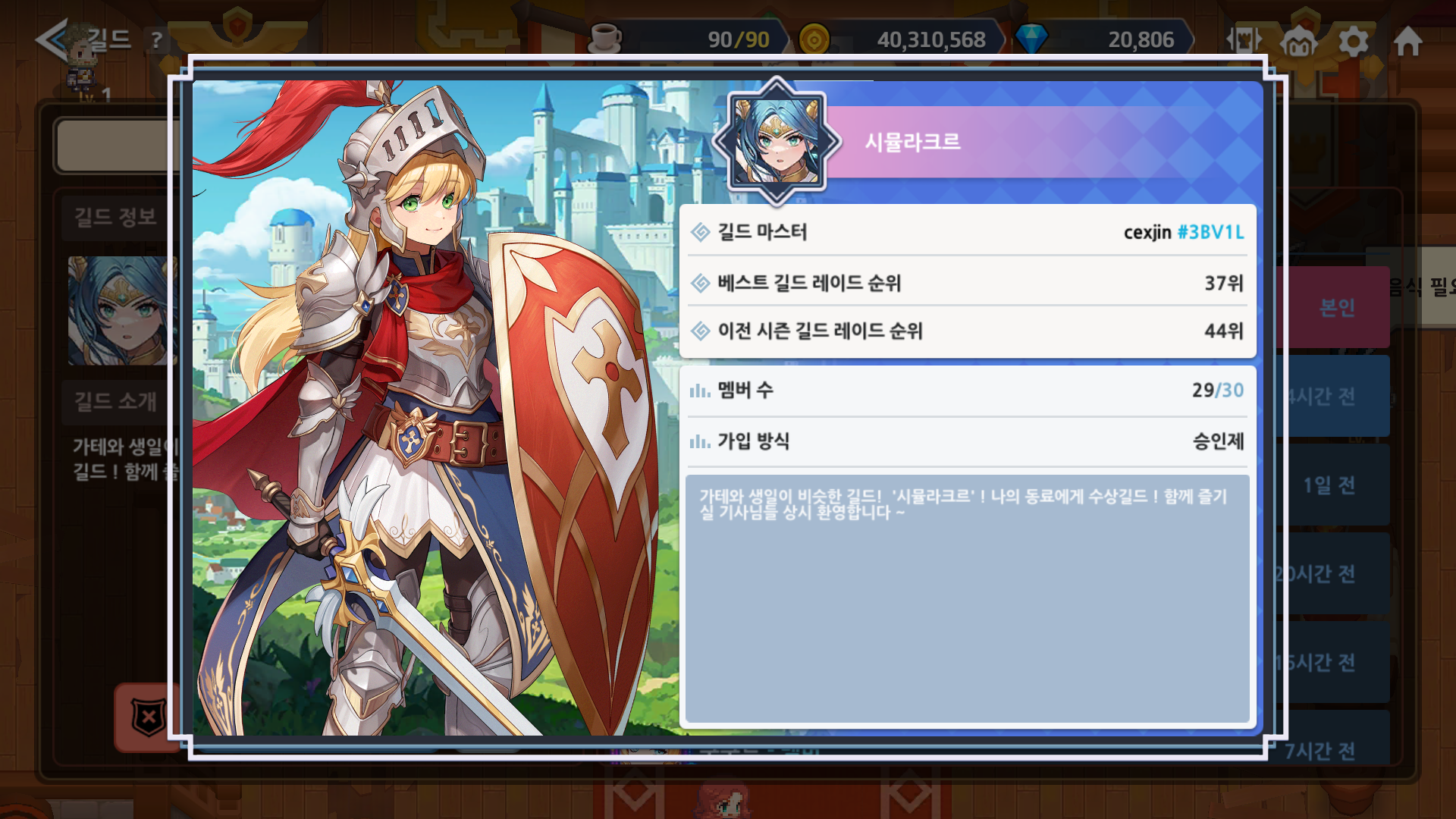 가입을 희망하시는 기사님은 댓글에 가디언테일즈 프로필 캡쳐를 댓글에 남겨주시면 감사하겠습니다.