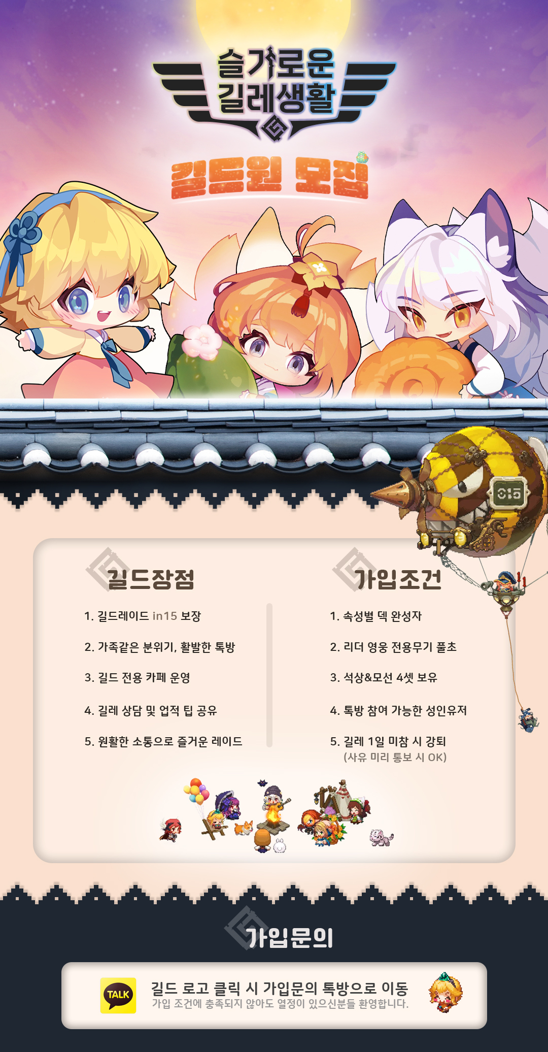 가입문의는 길드 로고를 클릭 하시면 오픈톡방으로 연결됩니다.