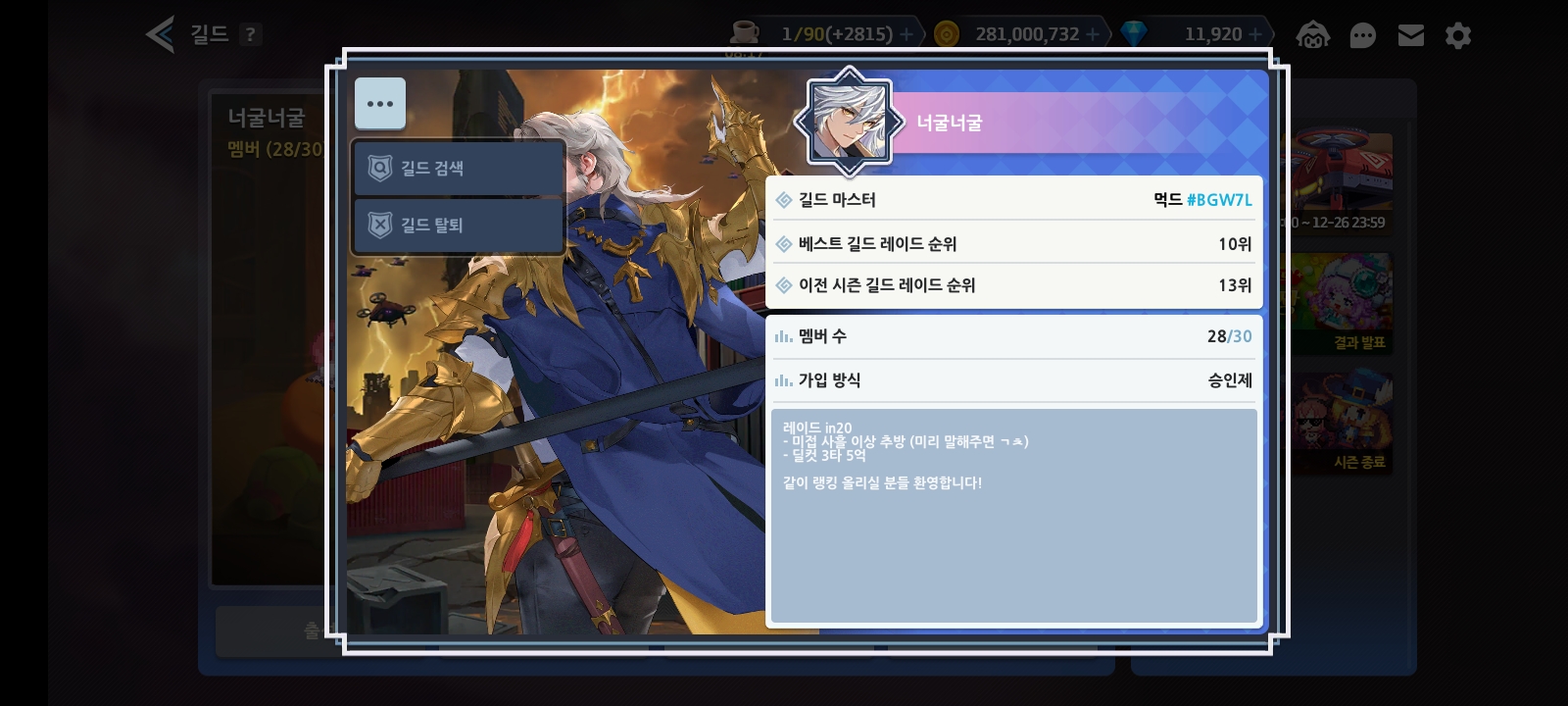 - 단톡방x (인겜 공지로 길레 추천 조합 공유)