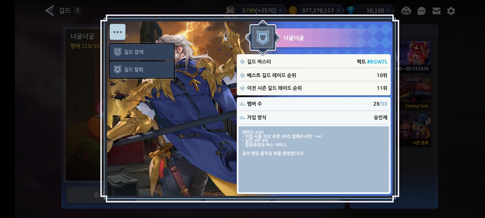 - 단톡방x (인겜 공지로 길레 추천 조합 알림)