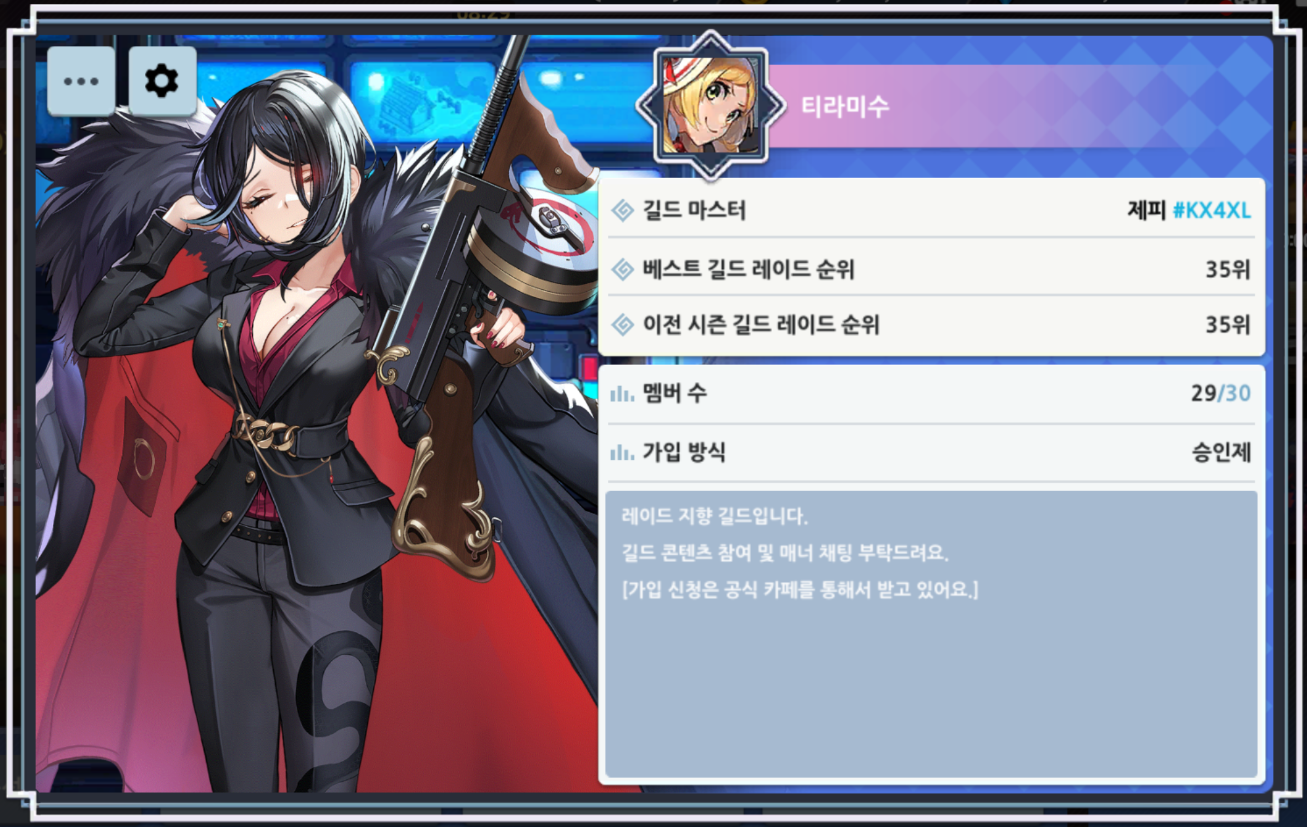 추후 업데이트될 길드 단위 콘텐츠까지 함께하실 유저를 찾고 있습니다.