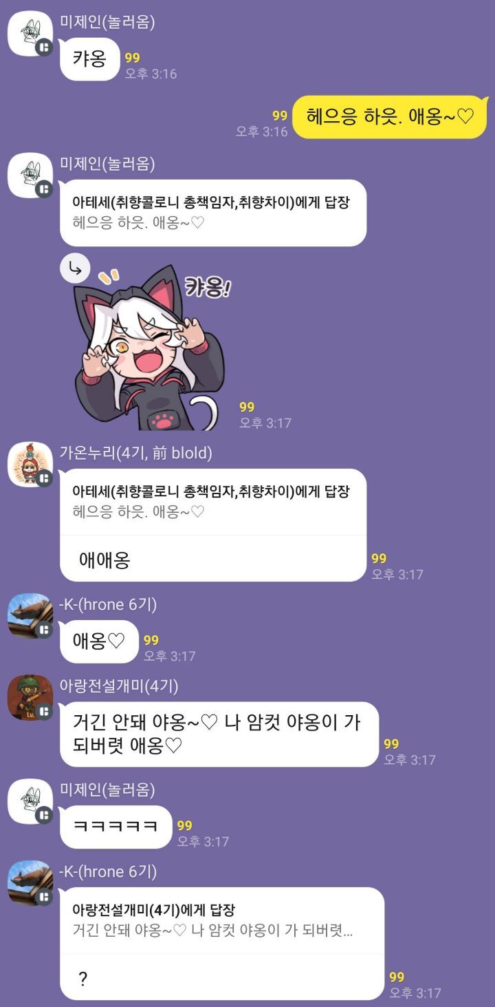 1. 취향1~7콜로니 각 기수분들과 외부인들이 모여있는 시끌벅적 뇌절주의 오픈채팅방 운영중!