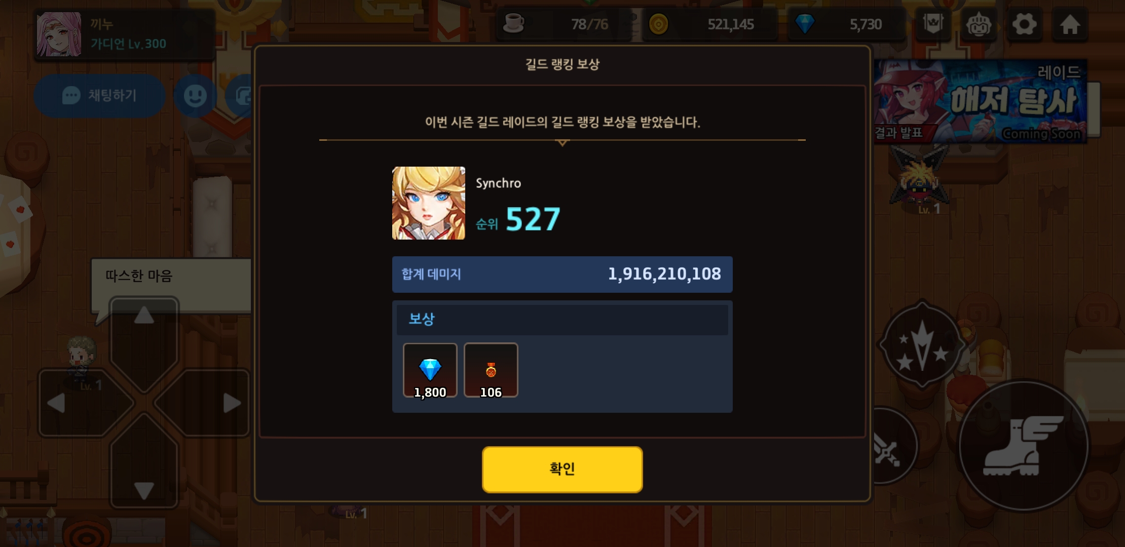 너와 나의 연결점. Synchro 가 길드원을 모집합니다. 저희 길드는 오픈채팅이나 친목강요가 없는 자유롭고 편안한 길드를 모토로 운영하고 있어 길드에 속하고 싶지만 간섭은 원치 않는 분들을 적극적으로 환영하고 있습니다. 길드 규칙으로는 1)3일 이상 미접 시 강퇴(길드장에게 설명 시 정상참작 가능), 2)비틱, 분탕, 타 길드원에 대한 공격적 태도나 상대방이 원하지 않는 지나친 관심이나 간섭 등의 행동을 보일 경우 경고 및 강퇴 3)14일x3회=총 42회의 길드레이드 중 10회 이상 불참 시(1/4 불참 시) 강퇴(길드장에게 설명 시 정상참작 가능)를 규칙으로 하고 있습니다. 길드가입을 원하는 유저 분들의 많은 신청 부탁드립니다.