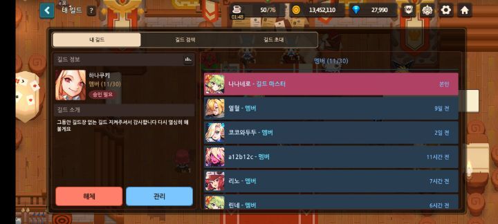 가끔 협동전 같은것도 같이하고 길드대화창도 편하게 하셔도 됩니다...!
