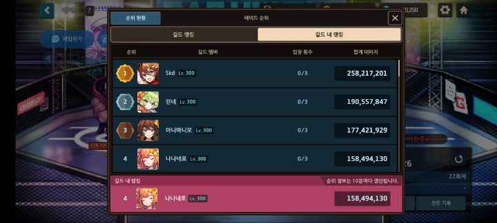 2. 길드레이드 때 최소한 가장 강한파티 하나라도 돌려주기!