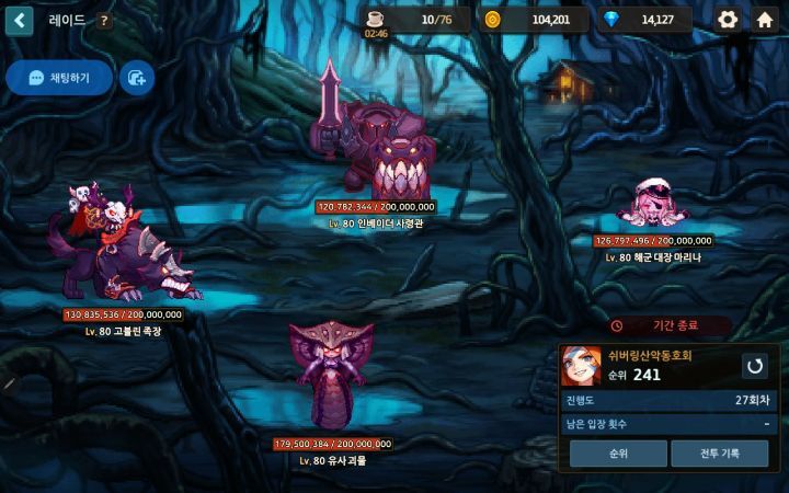 • 자신이 친 보스 체력이 50만 일때 본인이 설거지